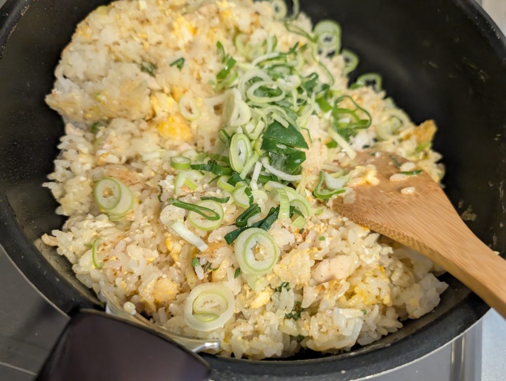 残しておいたネギを入れて、仕上げに軽く炒める。