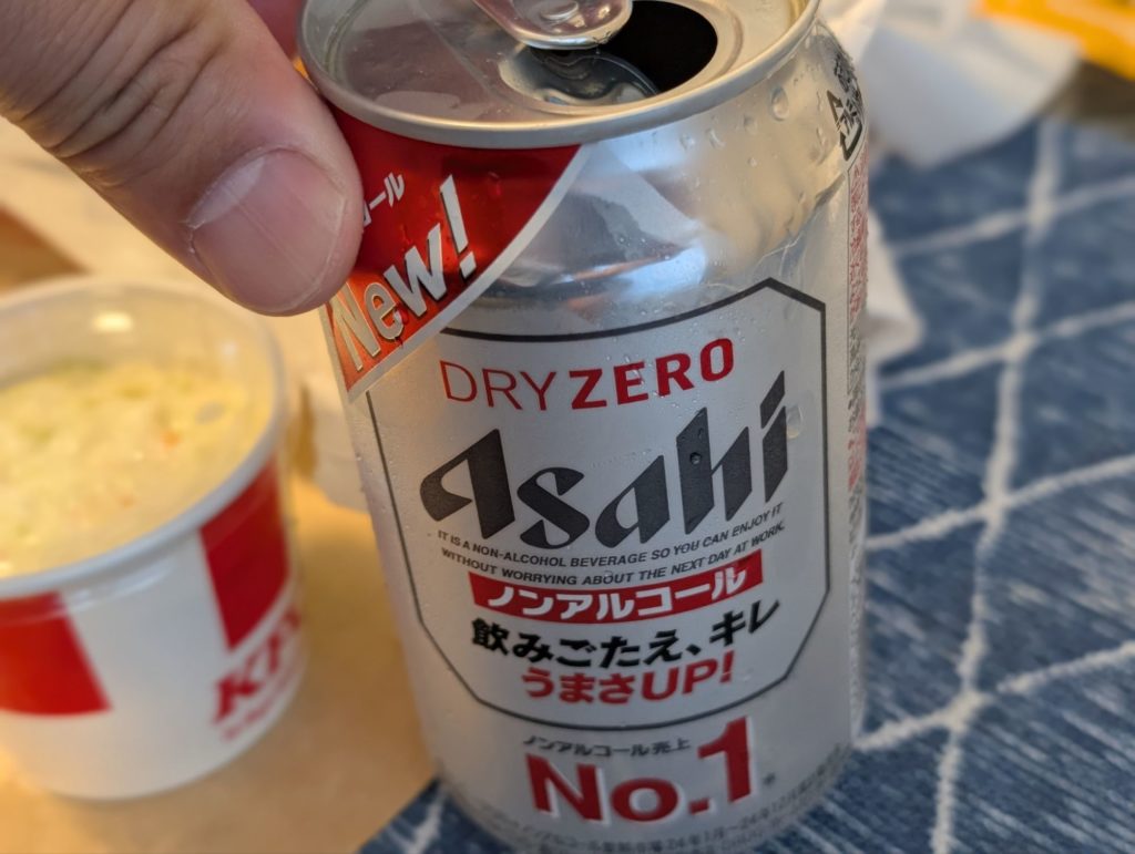 ノンアルコールなのになんか悪いことをしている気がしてしまうのは何故だろうか、、なんてほんの一瞬だけ頭をよぎったがかまわずタブを開けて飲み奥さんが横に来るのを待つ。